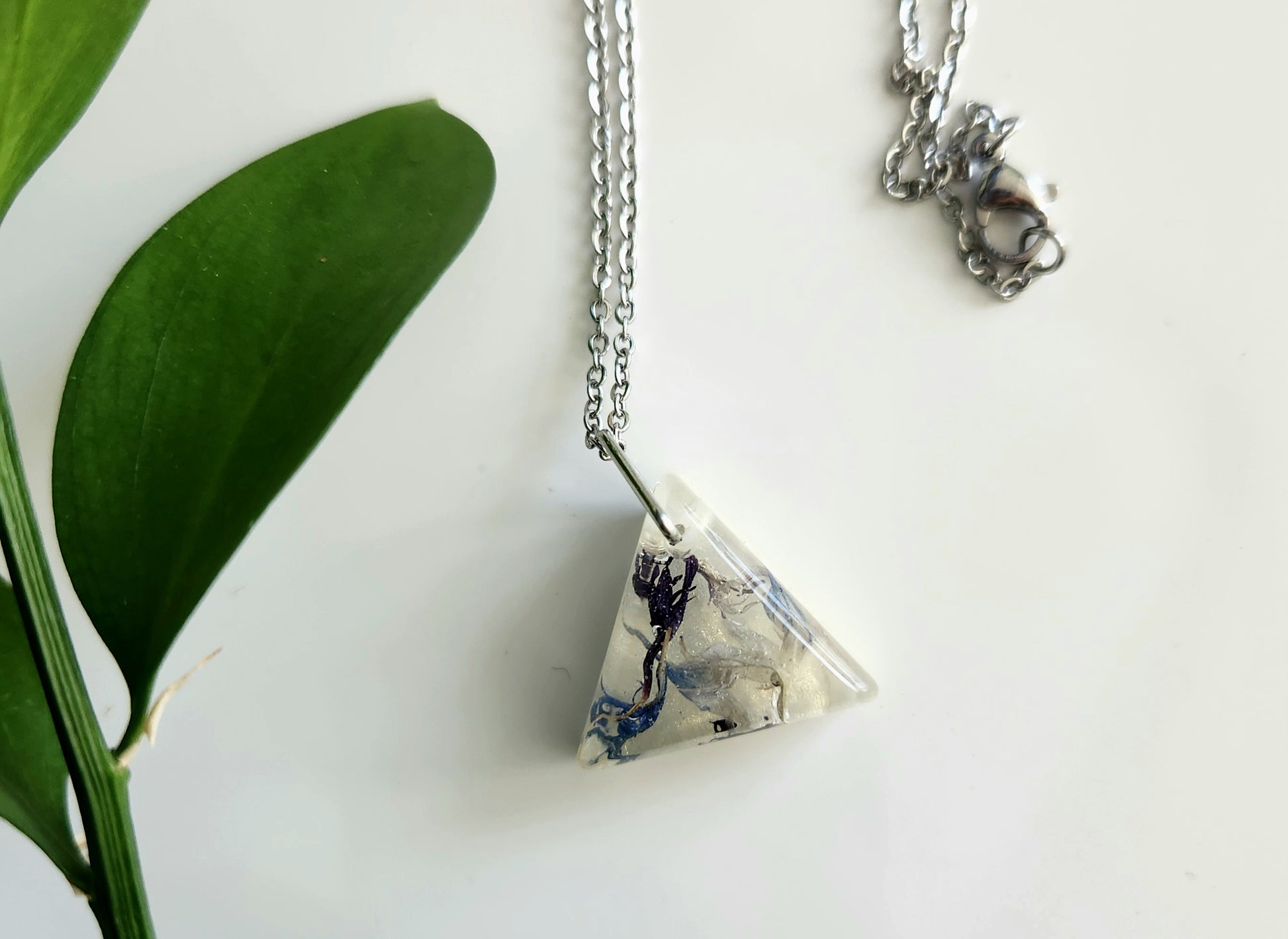 Preserved Floral Necklace - Bachelor Buttons (Blue + Purple)