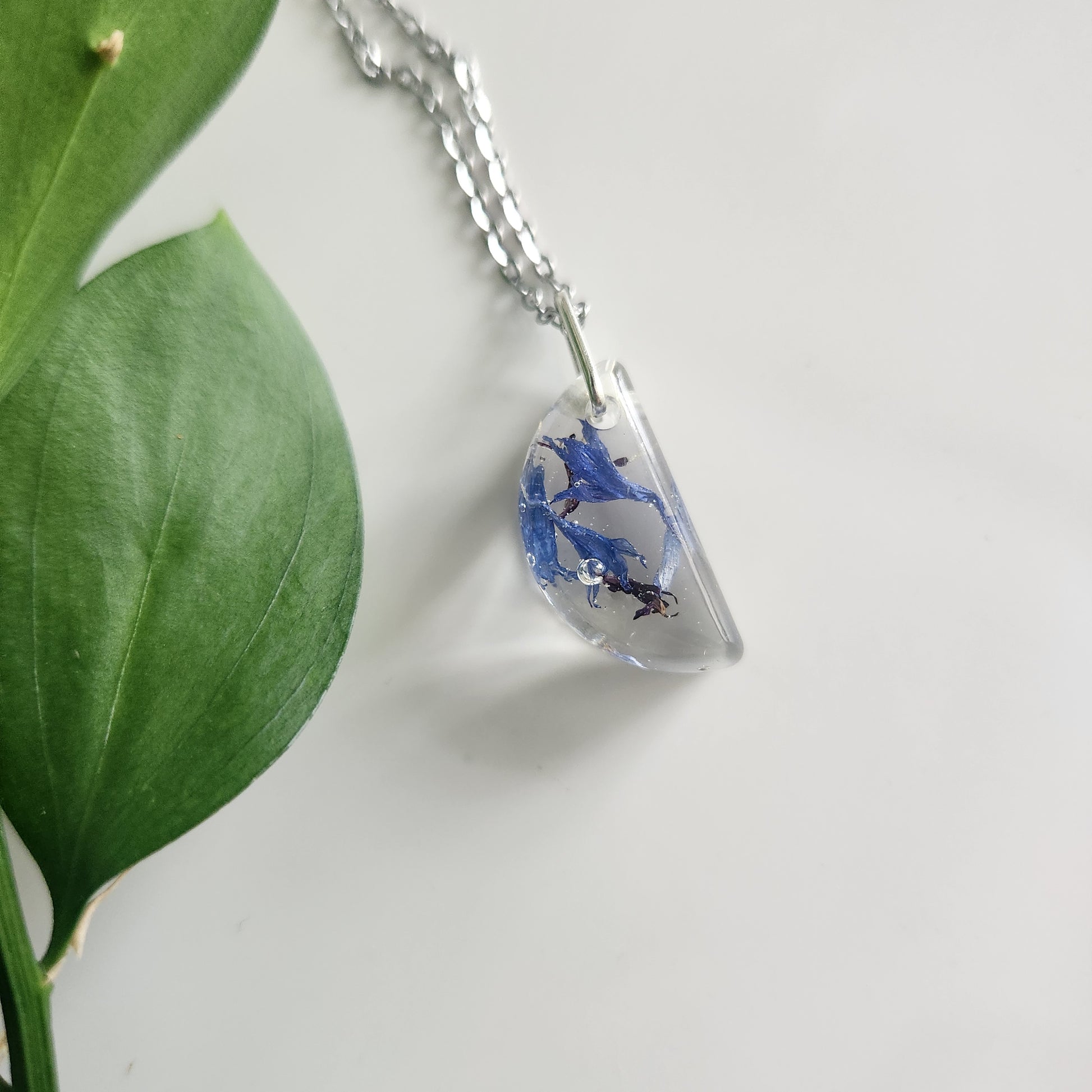 Preserved Floral Necklace - Blue Bachelor Button Half Moon