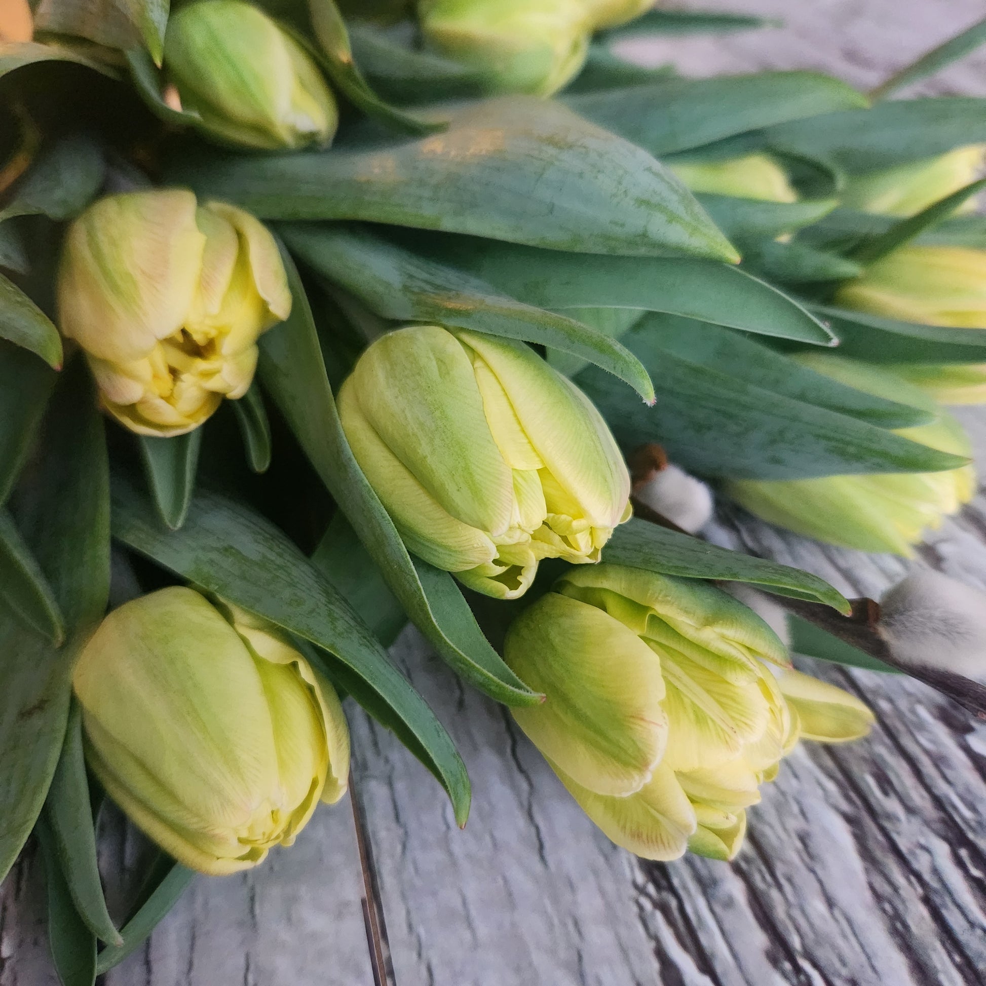 • 4 Bouquets of stunning, local grown speciality cut tulips. (1 bouquet per week). You'll enjoy a nice variety of colours and textures of soft yellows, pinks, and more. You won't find these tulips at the grocery store!