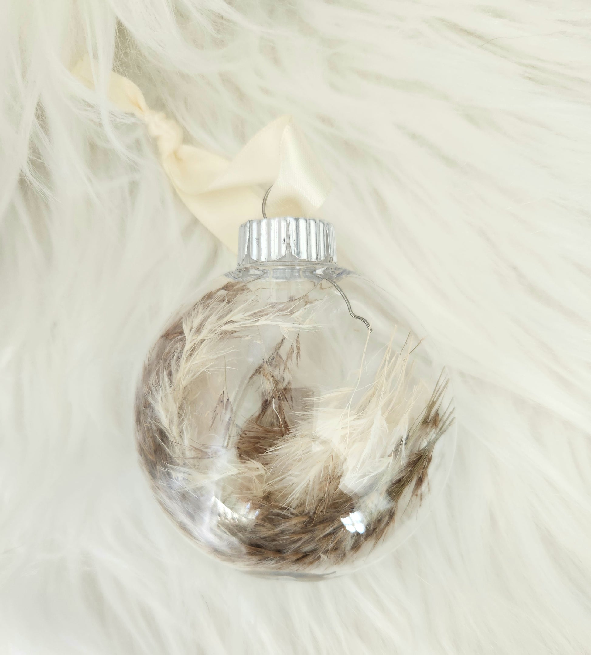 3" Plastic Christmas Flat Circle Ornament - Country Christmas Mixed Pampas Brown + White